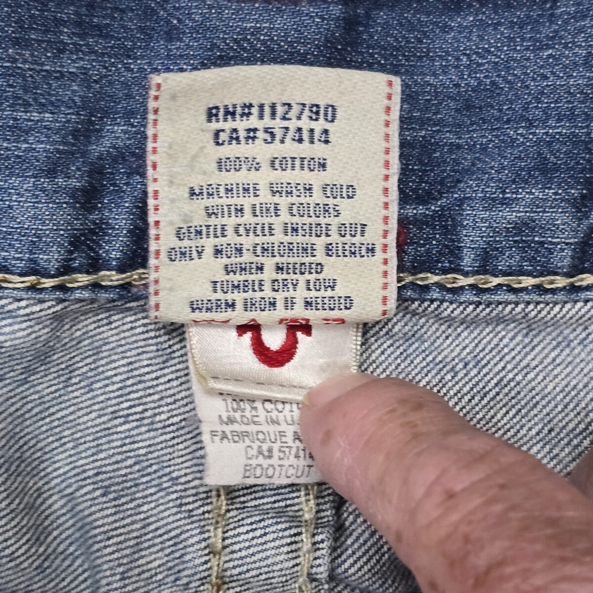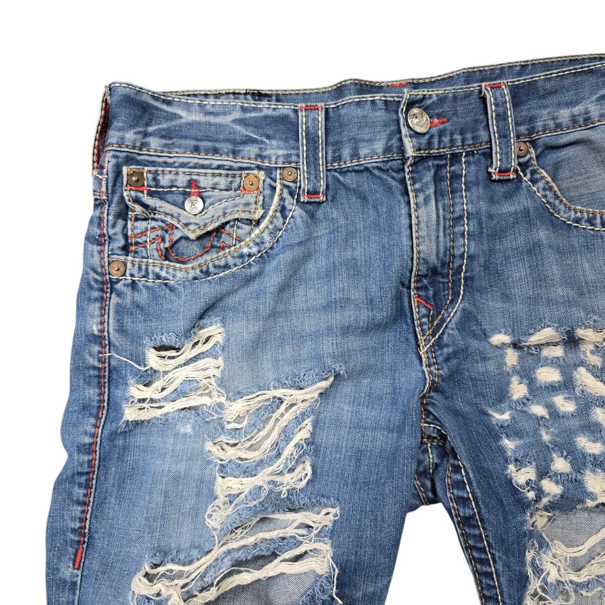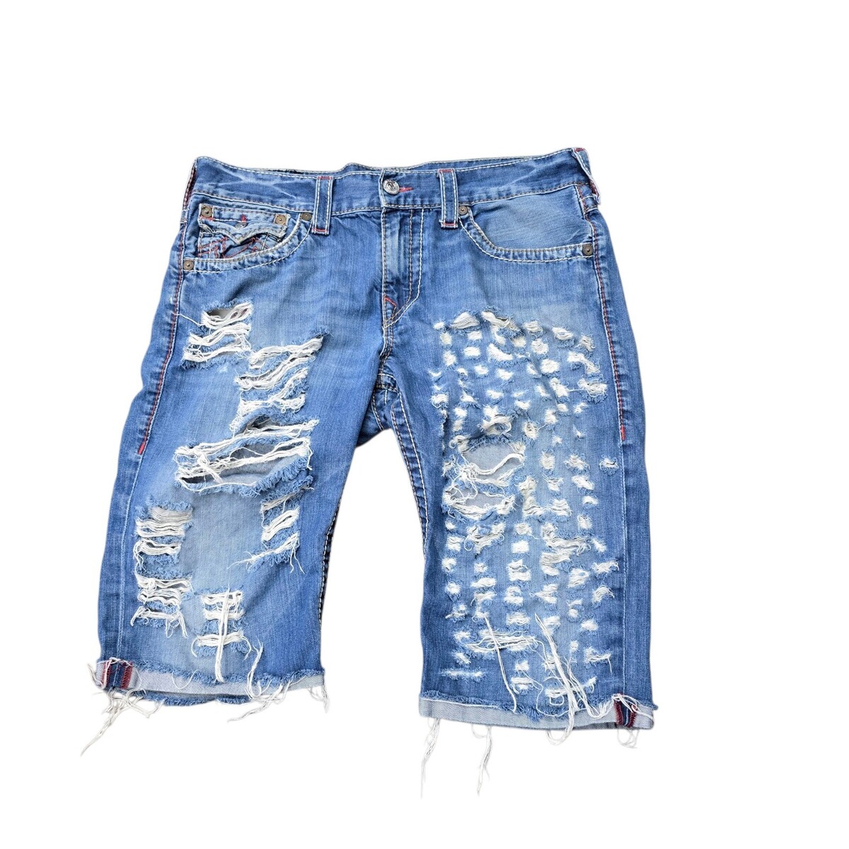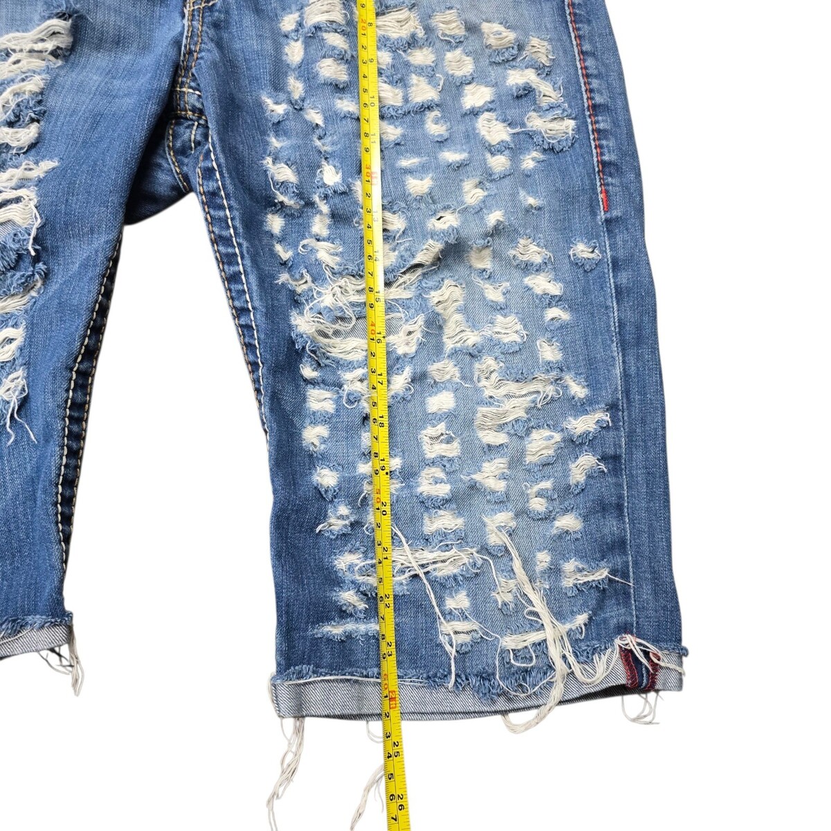 - True Religion Men’s 34 Denim Cutoff Shorts USA Made Y2K Raw Hem Distressed Jorts