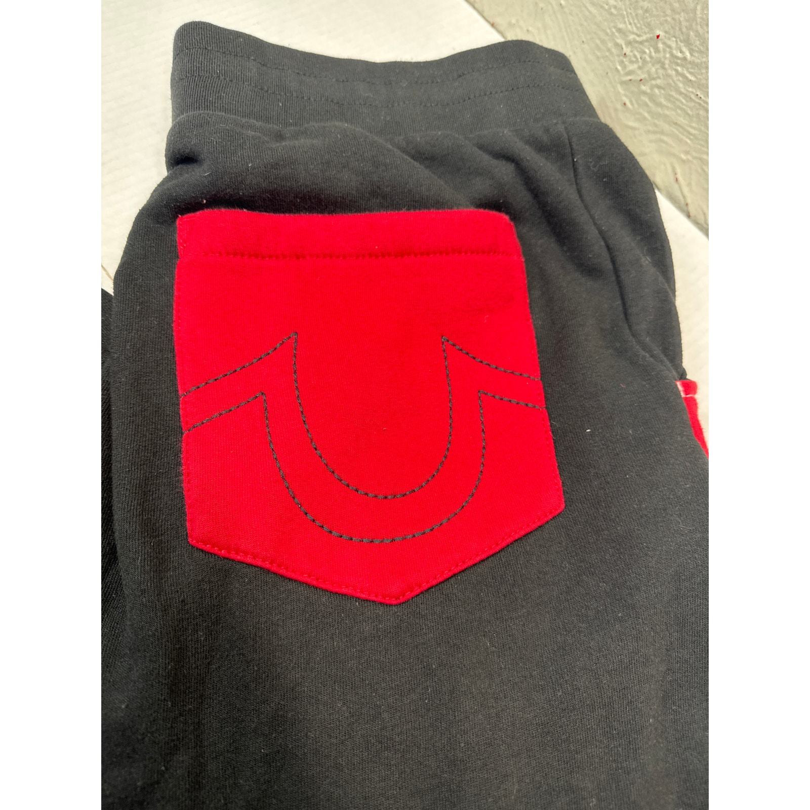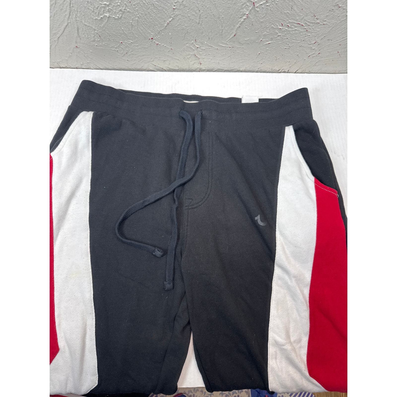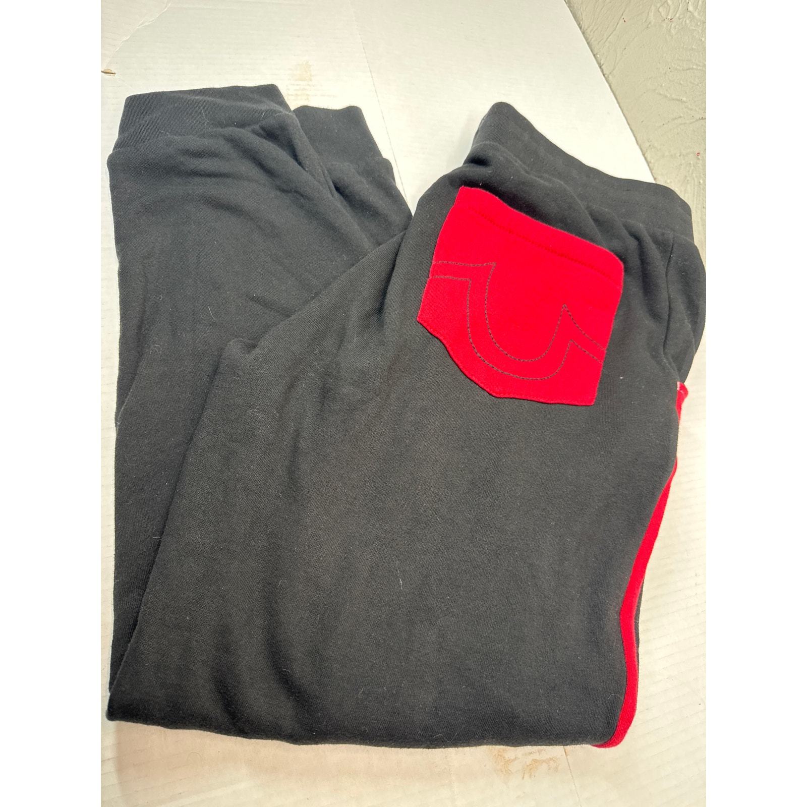 - True Religion Pants Mens Black Red Joggers Tapered Athleisure Fleece Size XL