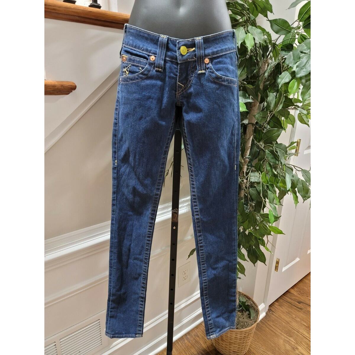 - True Religion Women's Blue Denim Cotton Mid Rise Skinny Legs Jeans Pant Size 25