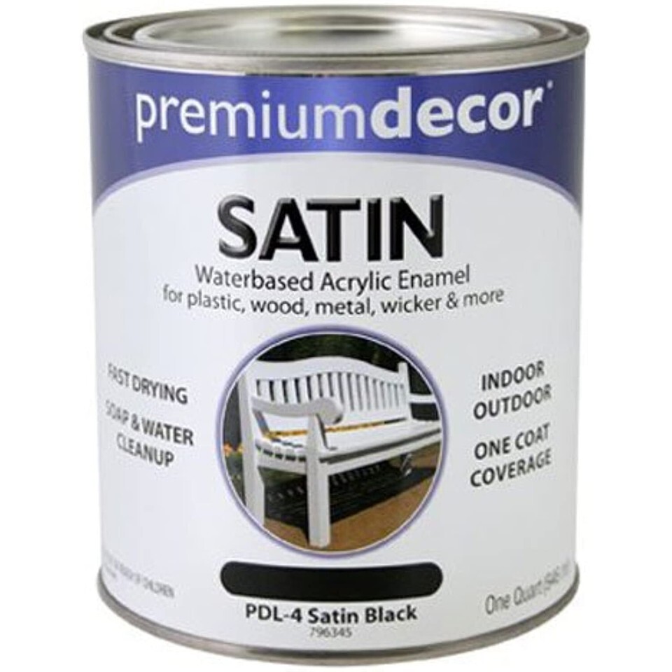 Product Description Pdl-4, premium decor, QT, satin black, waterborne satin enamel, VOC less than 150 grams per Liter. Adds extra shine to your product. Manufactured in United States. From the Manufacturer True Value Mfg. Company PDL4-QT PD 1 Quart Black Waterborne Satin Enamel is for indoor and outdoor use. Fast drying with easy soap and water cleanup. One coat coverage. Water based acrylic enamel. Durable, attractive finish.