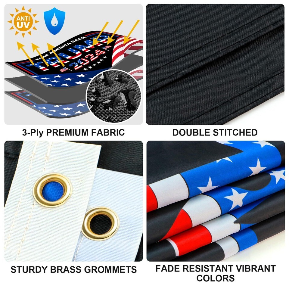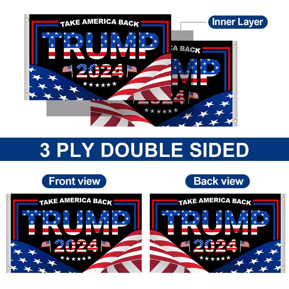 - Trump 2024 Flag 3x5 FT Double Sided UV Resistant Banner with 2 Brass Grommets