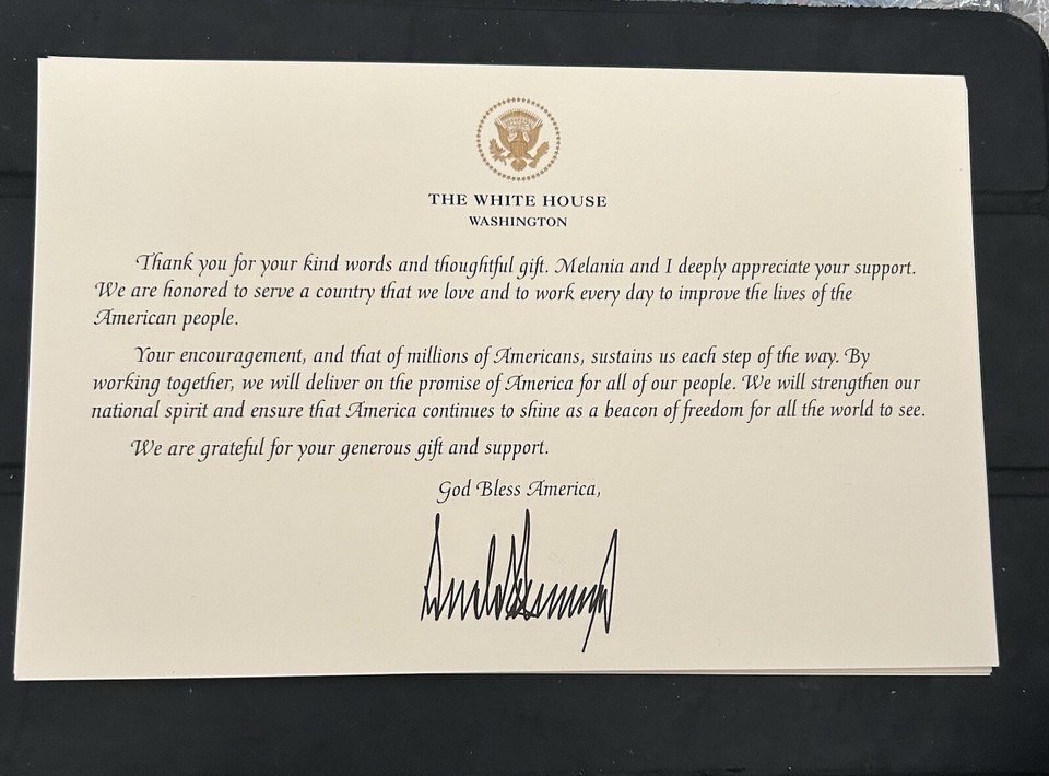 BLUE BALLPOINT METAL PEN WITH FACSIMILE GOLD SIGNATURE NAME..VERY POPULAR COLLECTIBLE PEN..,QUALITY METAL REFILLABLE PEN MAKES A GREAT GIFT FOR ANYONE..COMES IN CLEAR PLASTIC CASE... LAST 16 PHOTOS ARE TO SHOW OTHER ITEMS NOW LISTED FOR INDIVIDUAL PURCHASE ...AUCTION IS FOR ONE (1) WHITE HOUSE DONALD TRUMP PEN IN FIRST PHOTO...IN EXCELLENT NEW CONDITION.. VERY POPULAR TRUMP ITEM THAT BUYERS RETURN TO PURCHASE IN QUANTITY FOR GIFTS GREAT COLLECTIBLE PRESIDENTIAL ITEM?ALSO HAVE THIS SAME PEN LISTED WITH THE