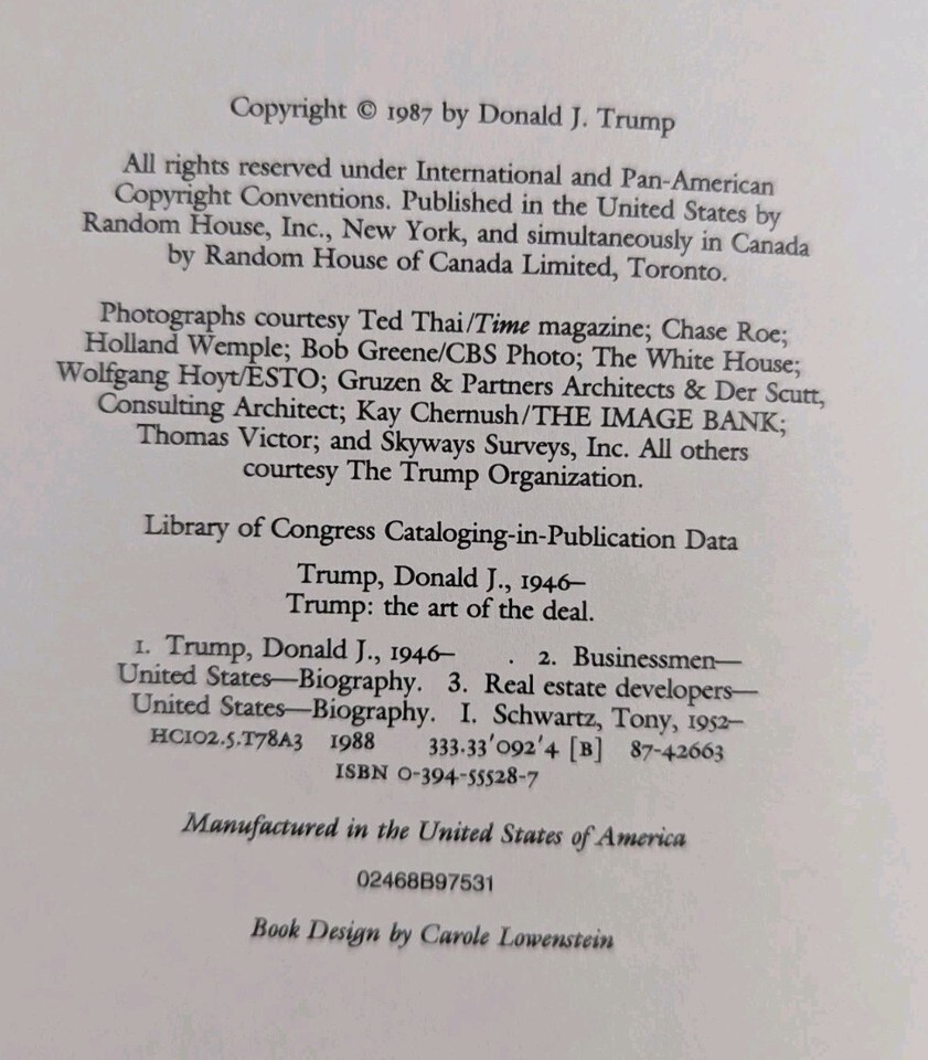 - Trump The Art of the Deal (1987 HC/DJ) President DJT, Tony Schwartz