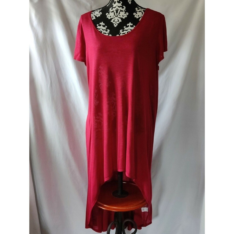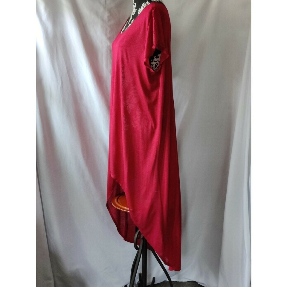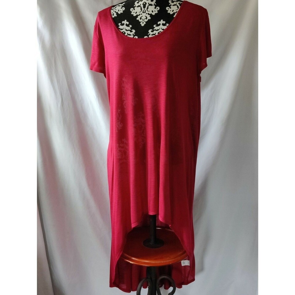 Try This Long Hi-Low Maxi Dress Scoop Neck 100% Rayon Slub Red Size 3X