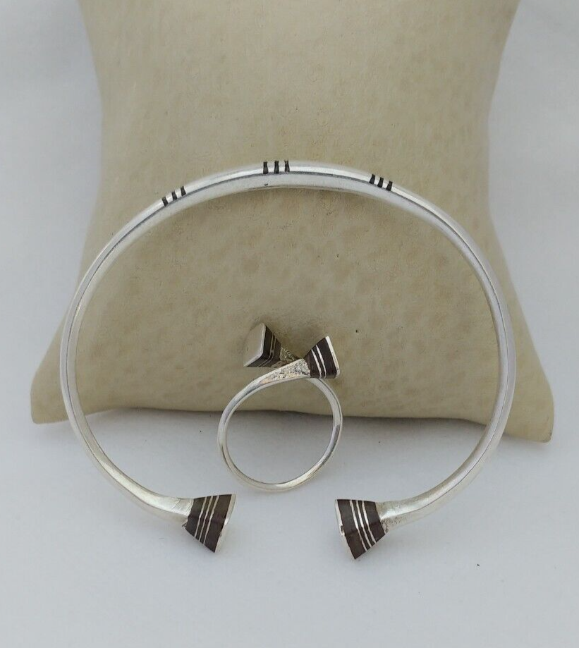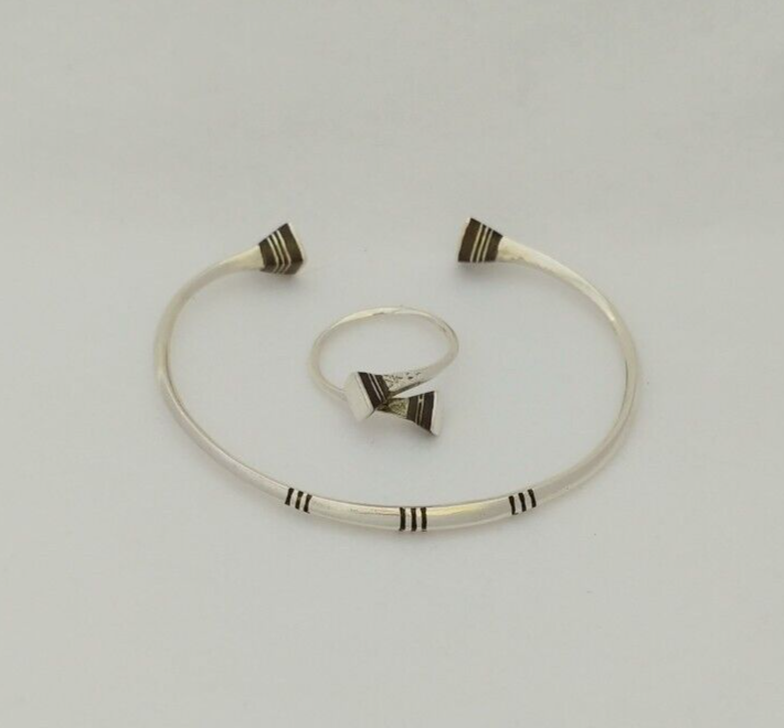 - Tuareg Bracelet Ring Silver Ebony Tribal African Handmade Cuff Moroccan Vintage