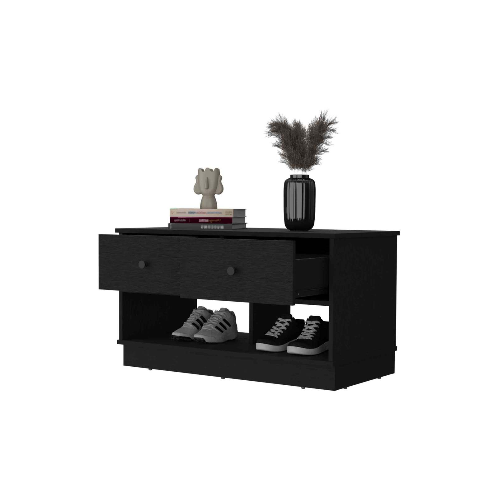 FM FURNITURE Tulip Storage Bench, Two Drawers, Two Shelves ,Black