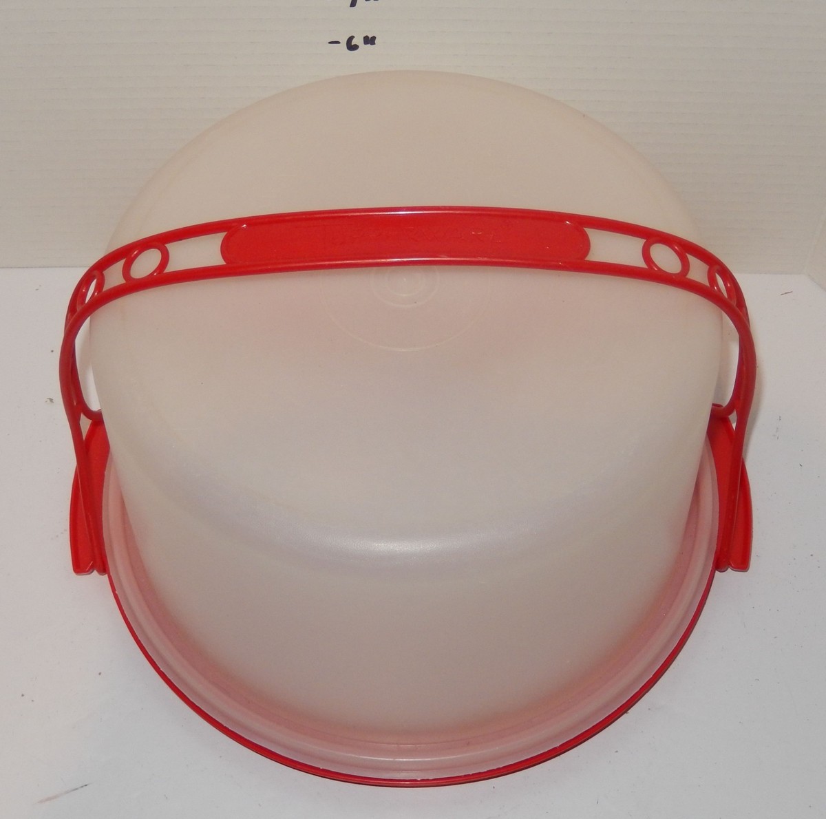 - Tupperware Red Handle Cake Taker Carrier Round Container Serving Dish 10" 684-2