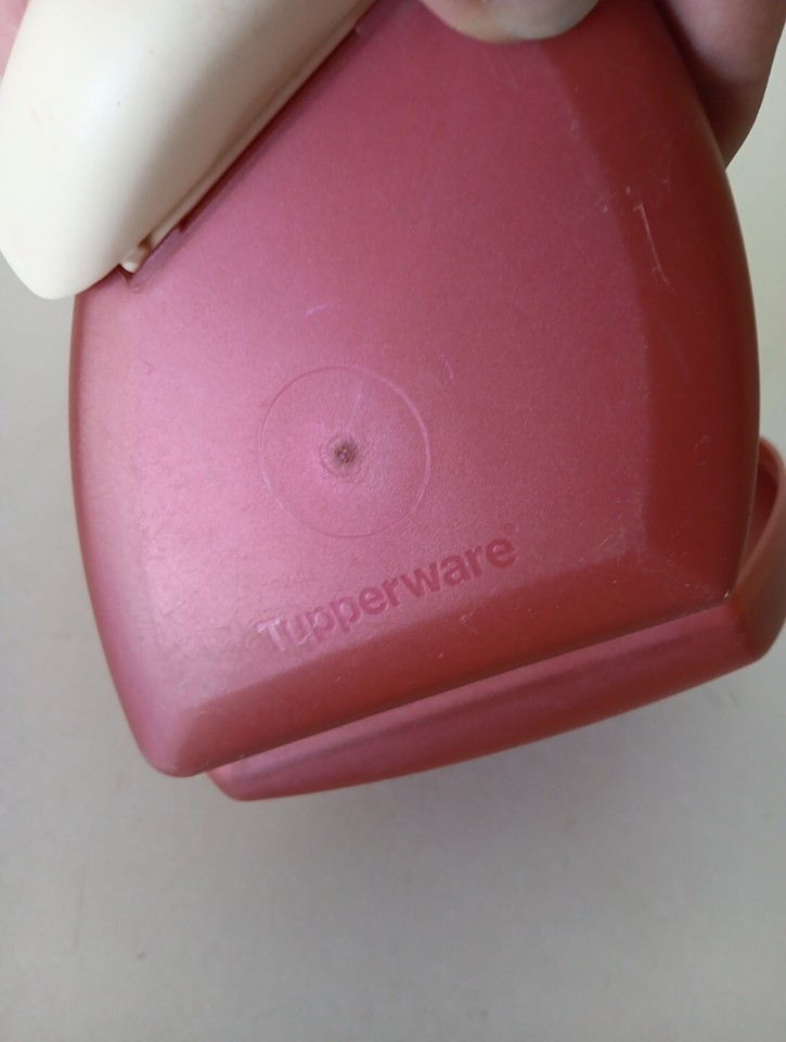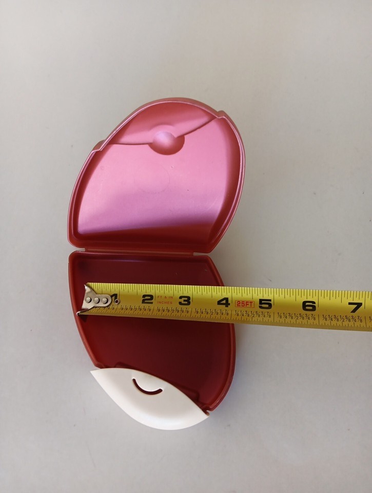 This Tupperware Small Travel Organizer is a must-have for anyone who loves to keep their things organized. The container is designed with a snap lid that ensures your things stay put. The dark maroon with the off white color top provides a stylish look that will complement any decor. Normal wear. See Pictures for size.
