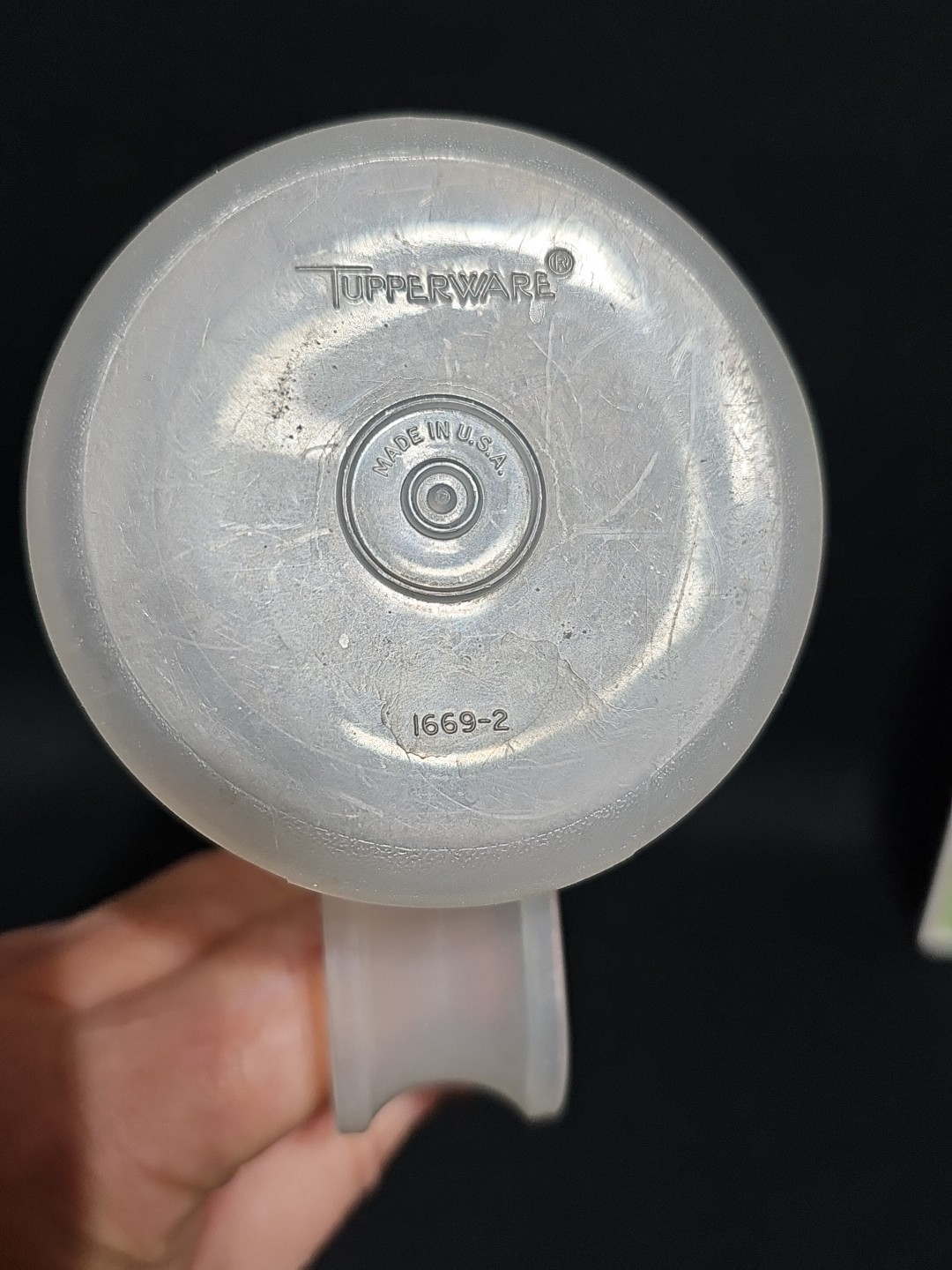 UP FOR SALE: Tupperware USA VINTAGE Measuring Pitcher with RED MEASURES #1669 Good Condition--A few scuffs and scratches from use--but otherwise in great condition AS IS AS SHOWN----Please take a look at the pictures for the best description. A photo is as good as a thousand words and is the best description of cosmetic conditions. Use your ZOOM TOOL to best see this item! Please look closely at all the photos for condition--Thank you *Vintage and secondhand items may have flaws. Please review item(s), description, and picture(s). I do my best to research and describe the items accurately, but I am not an expert on all of the items I sell. Unless specified in the listing, all items are sold AS-IS AS-SEEN in photos*All of My Items Come from a Smoke Free Home and have been cleaned per's standardsI do ship every Monday - FridayI do my best to ensure that my photos are as true to color as possible. However, due to inconsistencies of various monitors, lighting sources, digital photography, and product color may vary slightlyFeel free to visit My Store and Browse Through My Other Listings as I am happy to combine shipping for you.Please contact me with any issues prior to leaving negative/neutral feedback or low detail ratings, as I will always do my best to solve any problems that may come up!If you have any further questions, please feel free to message me. Any props that are used in the taking of the photos are not included. Only the item/items in the title of the listings are being sold