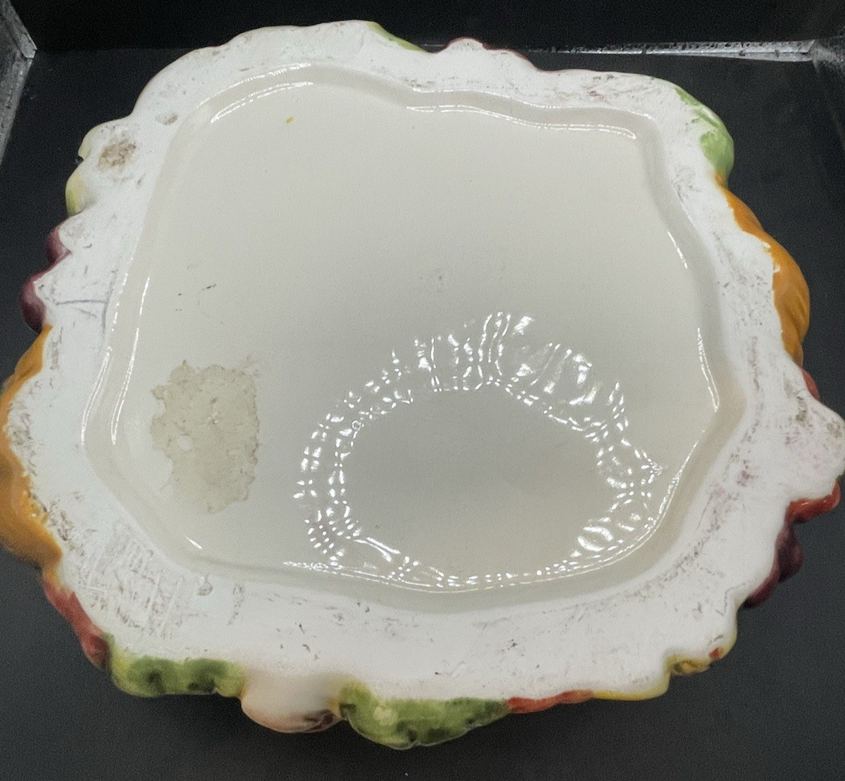 The product is a vintage Turkey Soup Tureen with Lid and Ladle, perfect for serving up delicious soups or stews during the fall season. Made of porcelain or ceramic, this multicolor tureen features a traditional design that adds a touch of elegance to any tabletop setting. This original piece from Türkiye includes a lid and spoon, making it a practical and decorative addition to your dinnerware collection, ideal for Thanksgiving or other autumn gatherings.