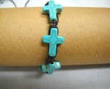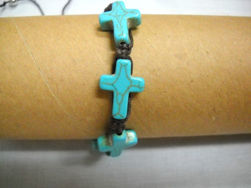 - TURQUOISE BLUE HOWLITE 4 CROSS on CHOCOLATE BROWN MACRAME ADJ BRACELET OR ANKLET