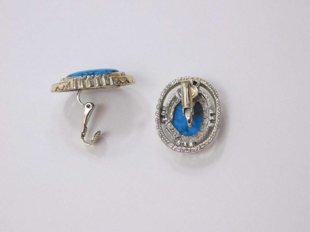 - Turquoise Clip Earrings, Signed Mode Art 1960s