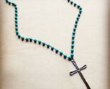 - Turquoise Long Beaded Necklace with Antique Copper Cross