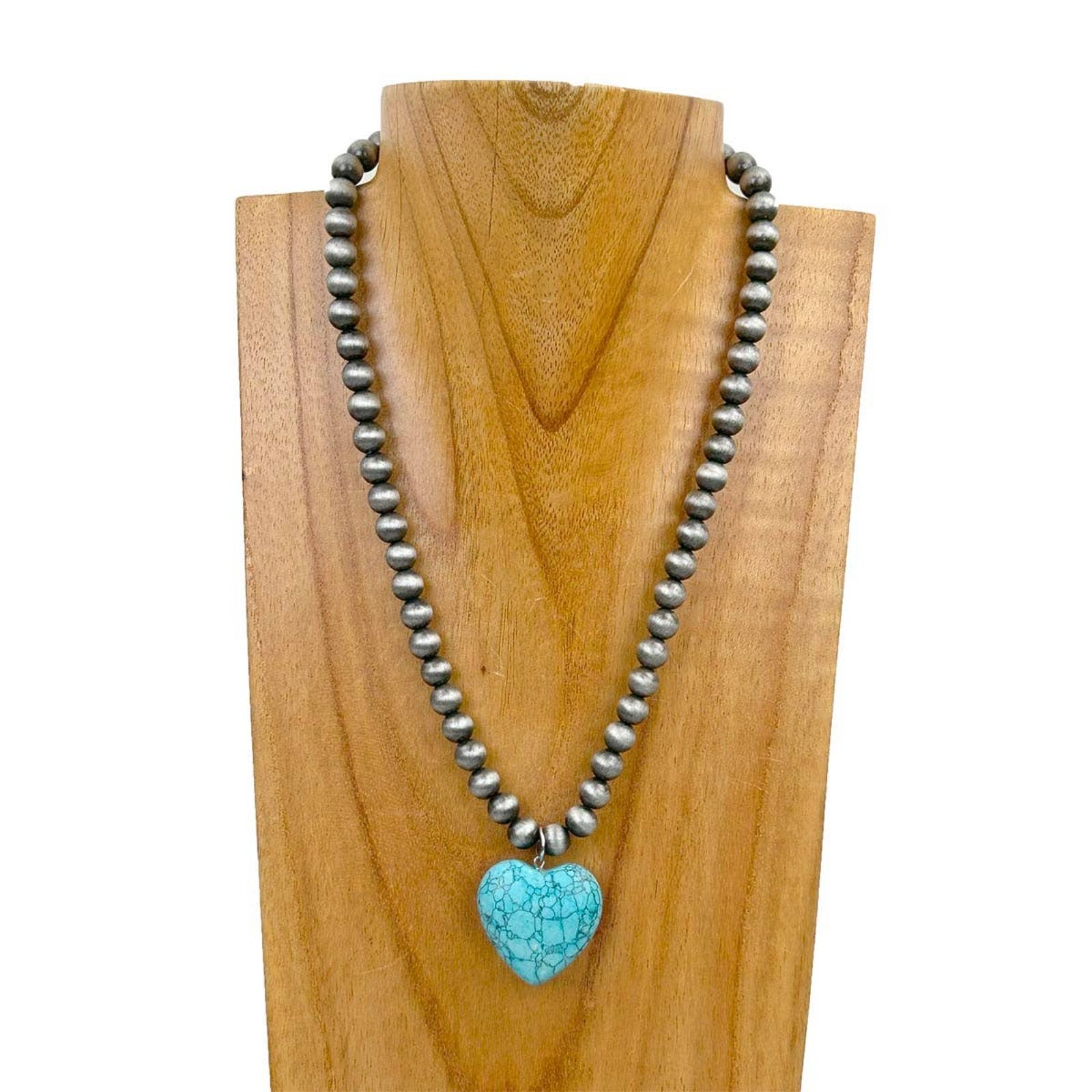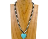 17 Inches silver Navajo like pearl beads with blue turquoise stone heart pendent Necklace