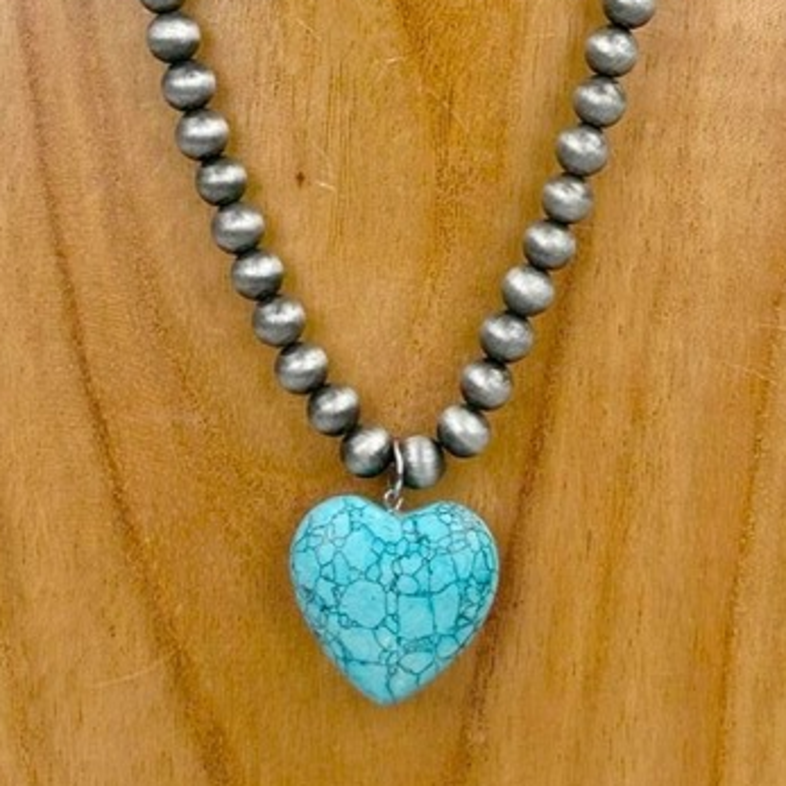 - Turquoise Stone Heart Navajo Like Beaded Necklace