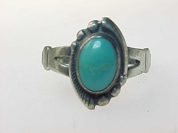 - TURQUOISE Vintage Ring set in Sterling Silver - Size 6 - FREE SHIPPING
