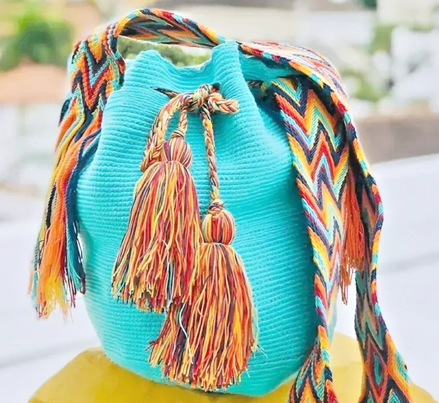 - TURQUOISE WAYUU MOCHILA COLUMBIAN BAG MEDIUM
