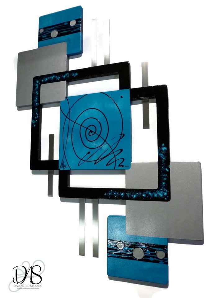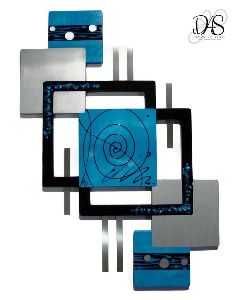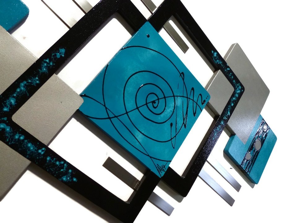 - Turquoise wall art, Wood Metal Wall Sculpture, Square wall decor, 38X20 Art69