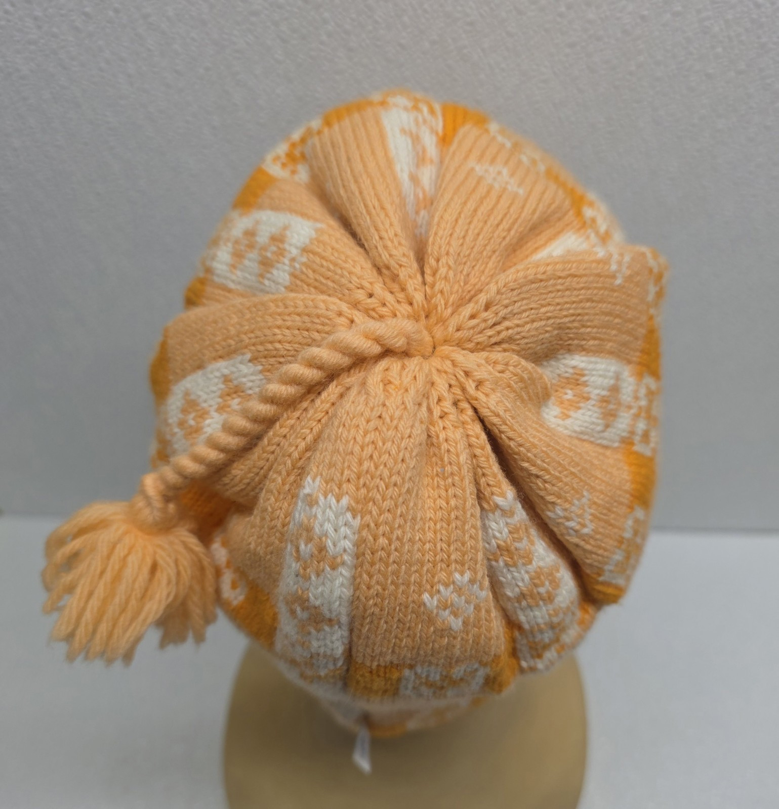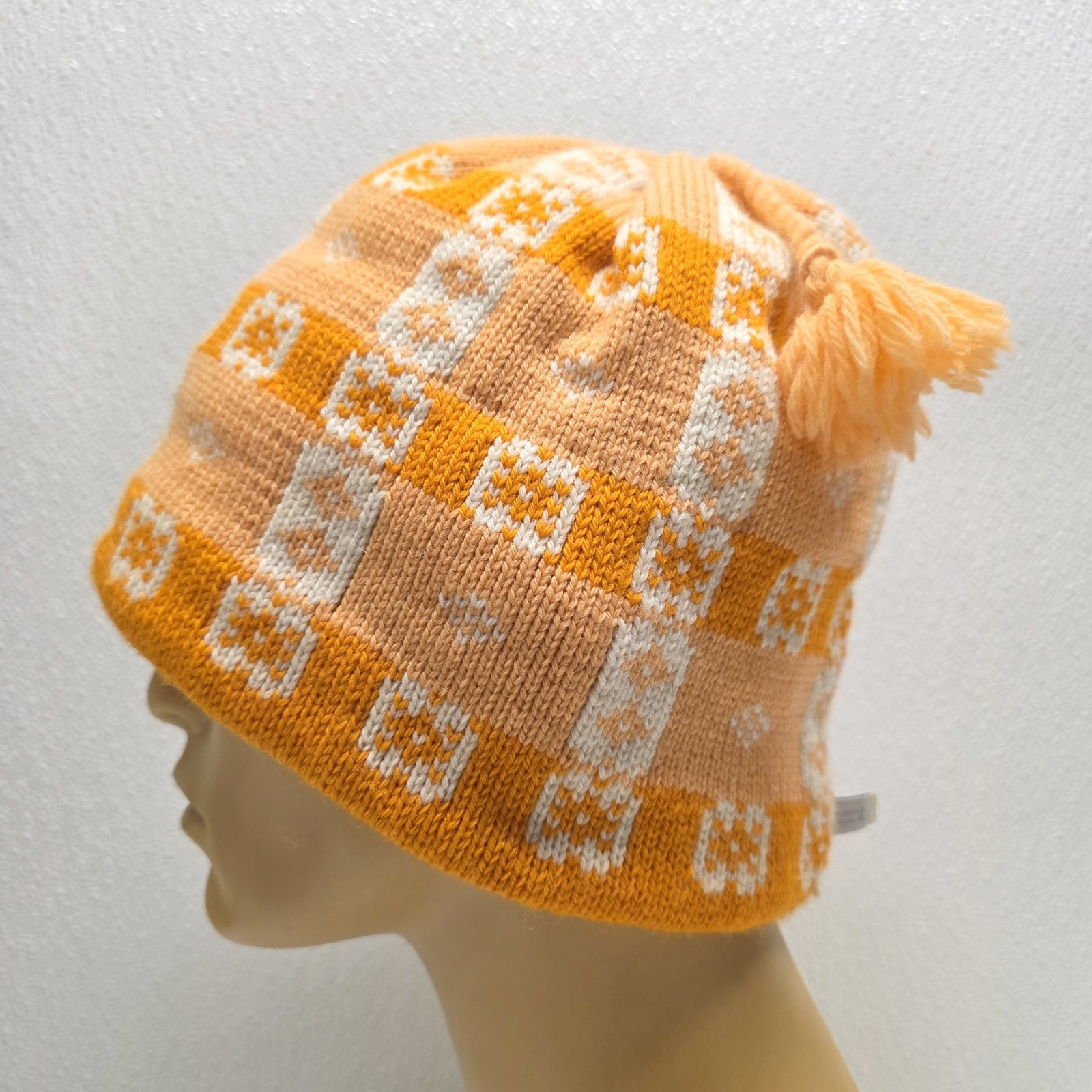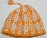 Turtle Fur Wool Orange Winter Geometric Snowflake Print Knit Hat Women's Beanie. Images show actual item that will ship.