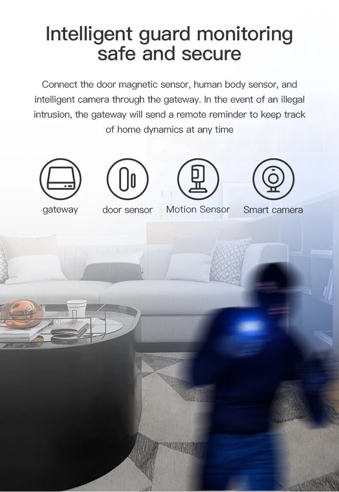 5.Support security function: Can be integrated into the Tuya Security SaaS platform for added convenience to satisfy various protection requirements with alarm function; Tuya chip built-in enables voice control via Alexa and Google Home for freeing your hands in another sense.