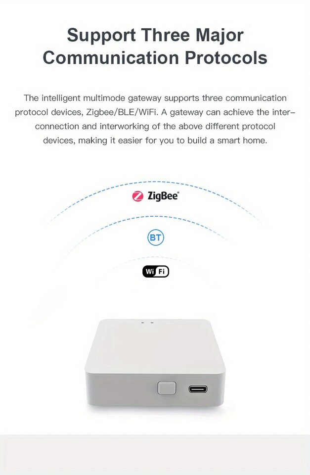 1.Sub-device control as multi-mode compatible:Control sub-devices of the gateway, supporting remote control and group control for connected Bluetooth and ZigBee smart devices in Smart Life App as multi-protocol communication for ZigBee3.0 standard protocol and Bluetooth SIG standard protocol based,ensuring stable control of 128 devices as strong performance.