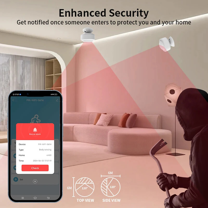 - Tuya WIFI 120° Adjustable Angle Motion Sensor Infrared Body Movement Detector