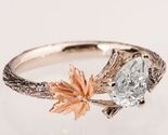 Celebrate love with this stunning nature-inspired engagement ring, designed for those who adore woodland beauty and rustic charm. This handcrafted ring features a textured tree branch-style band that gracefully wraps around a brilliant pear-cut stone, symbolizing uniqueness and elegance. A delicate rose gold-tone maple leaf detail adds a warm, earthy touch, perfect for free-spirited souls or lovers of the outdoors.