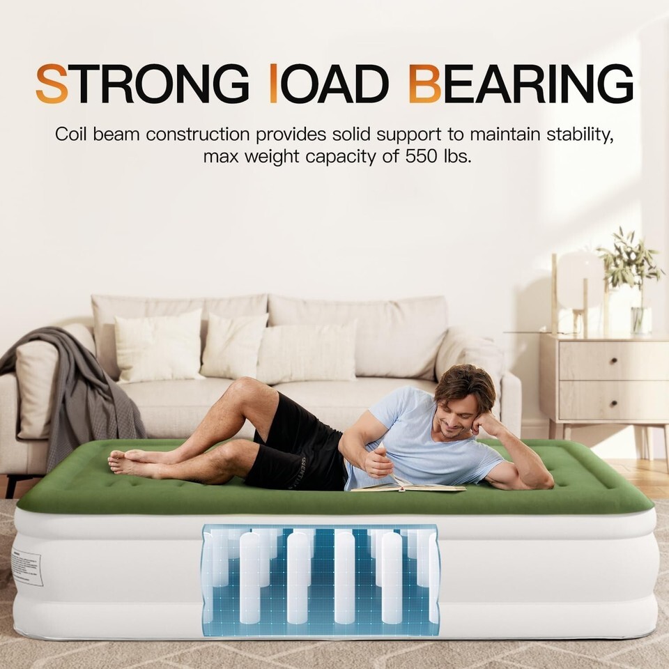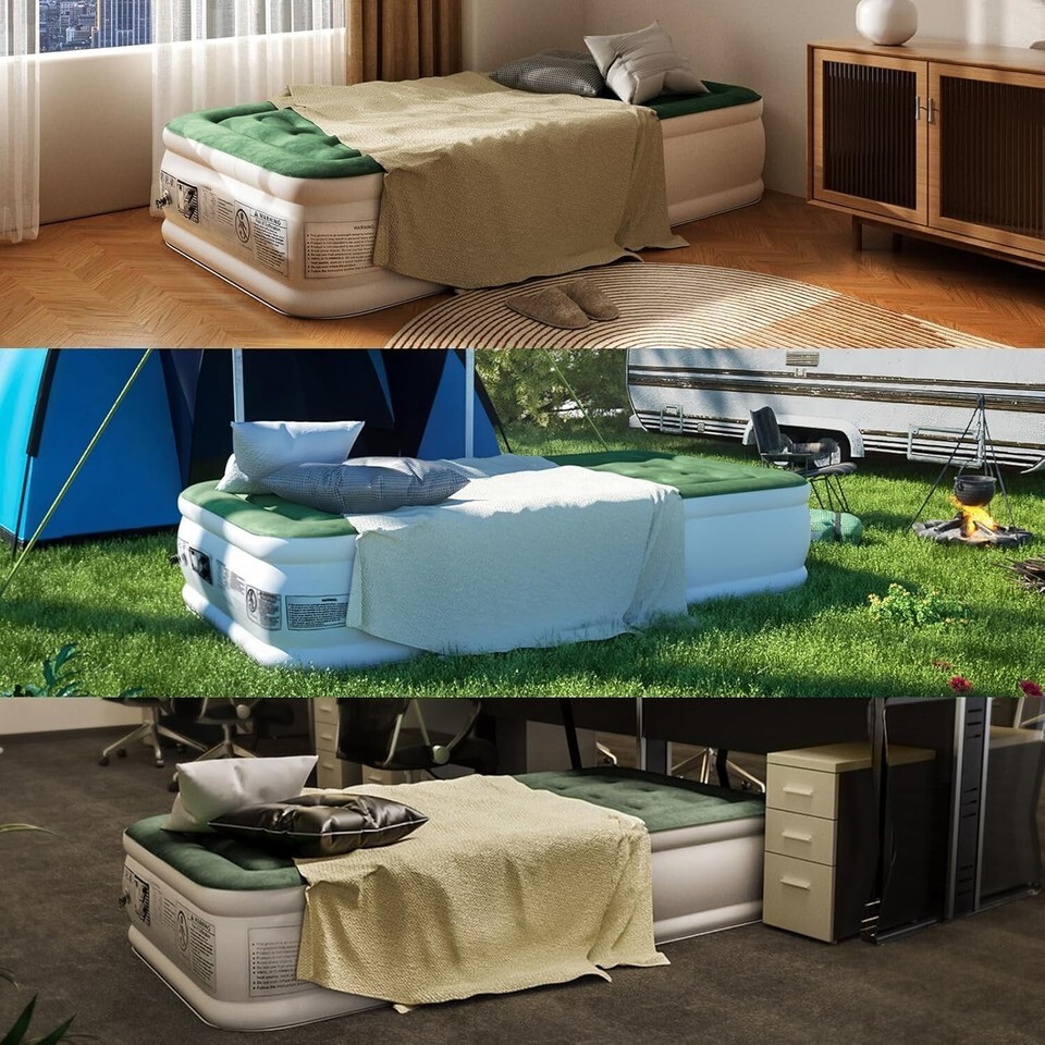 - Twin Air Mattress with Built-in Pump - Quick Inflation, 16" Comfort for Travel