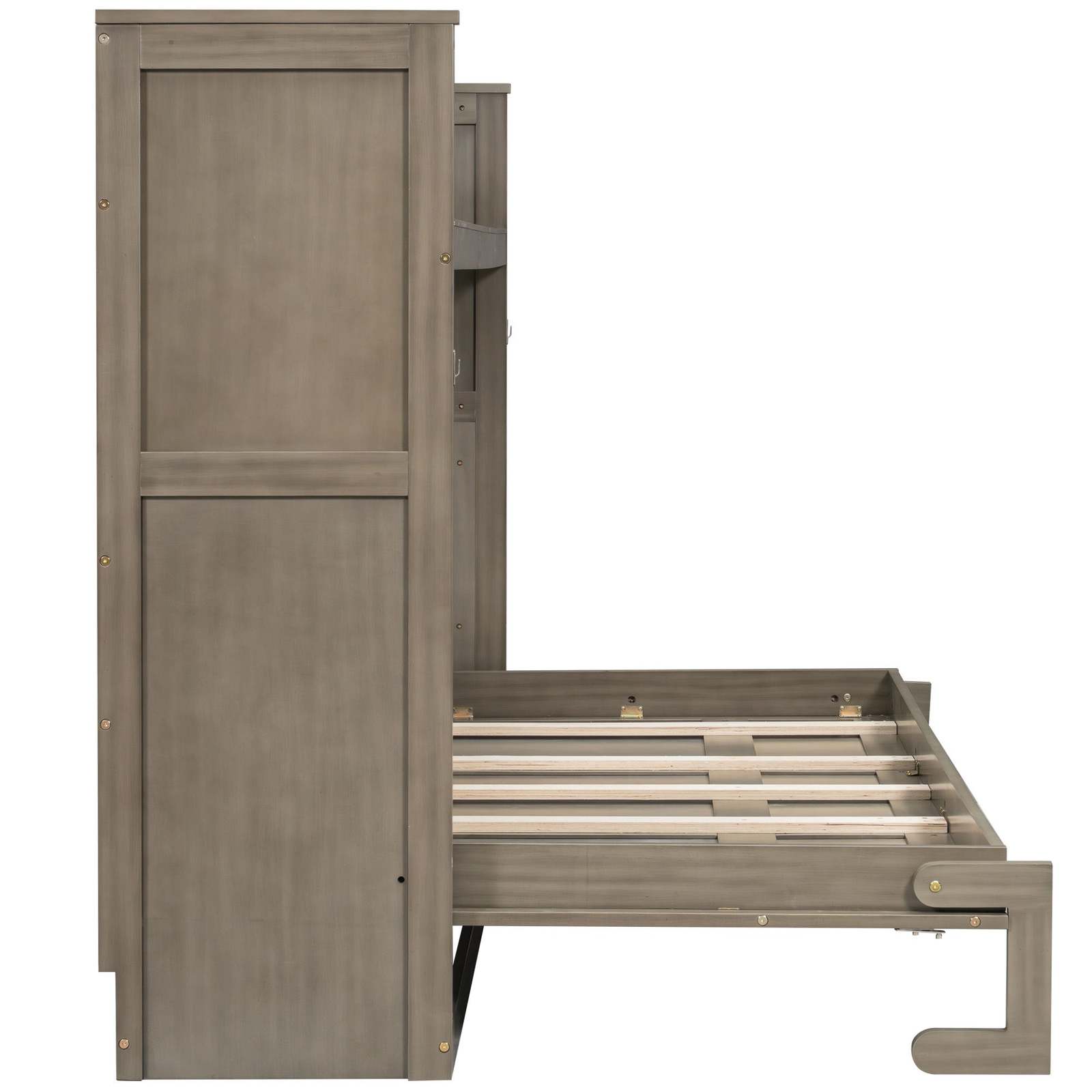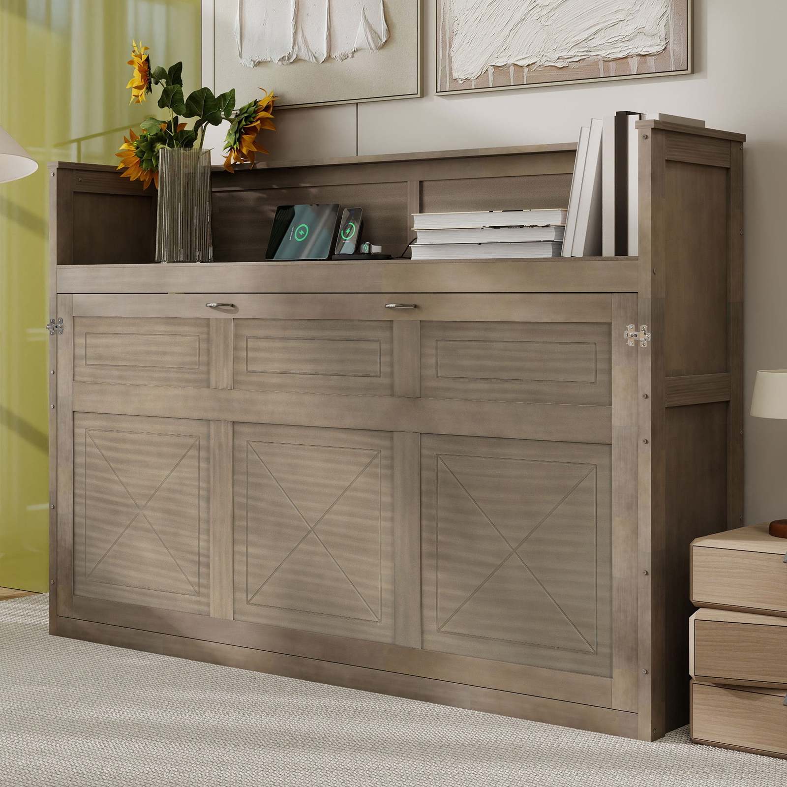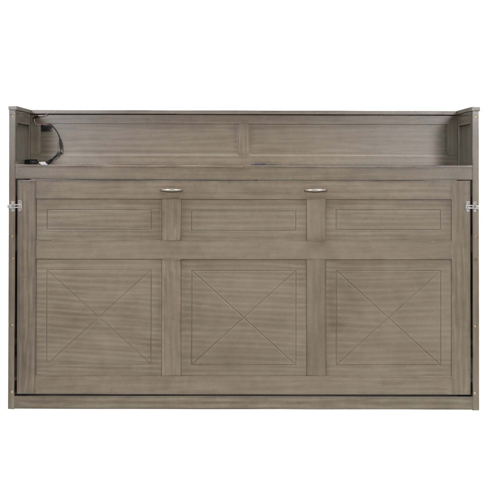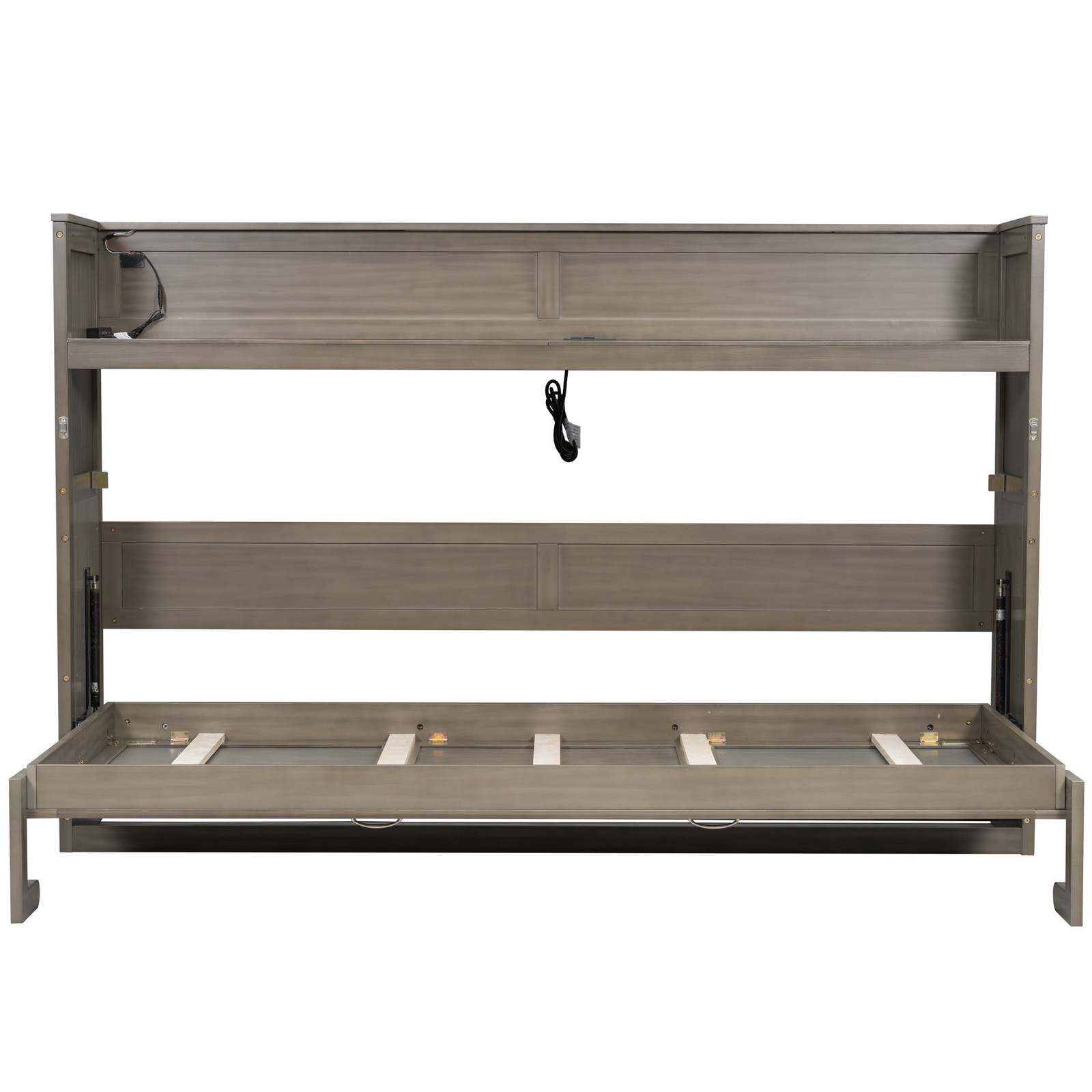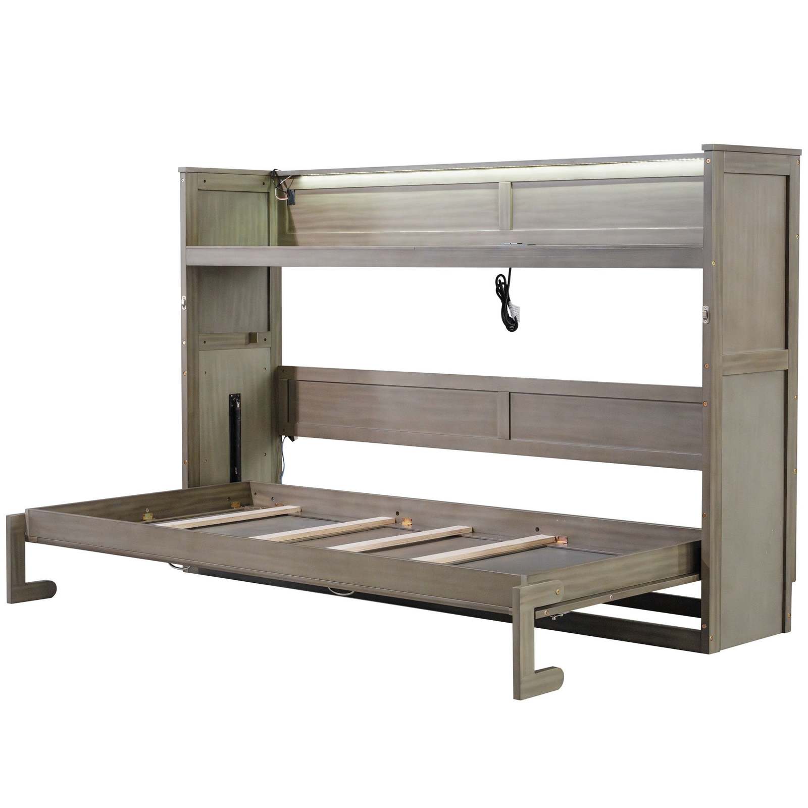 - Twin XL Murphy Bed w/ Desk, LED Light, USB Charging Station, Gray Wash