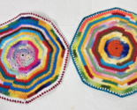 Two Hand Crocheted Rainbow Potholders Round 7 1/2" Grandma Core Lot A