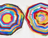 - Two Hand Crocheted Rainbow Potholders Round 7 1/2" Grandma Core Lot C