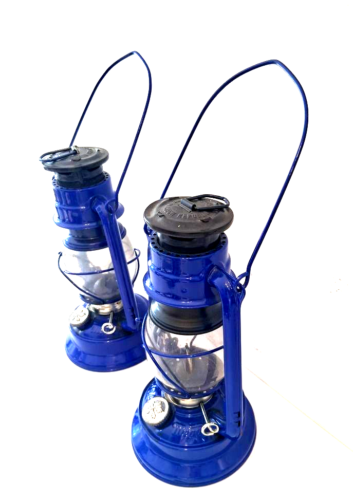 - Two Meva Railroad Kerosene Paraffin Lantern Lamps #864 Czech Republic Blue