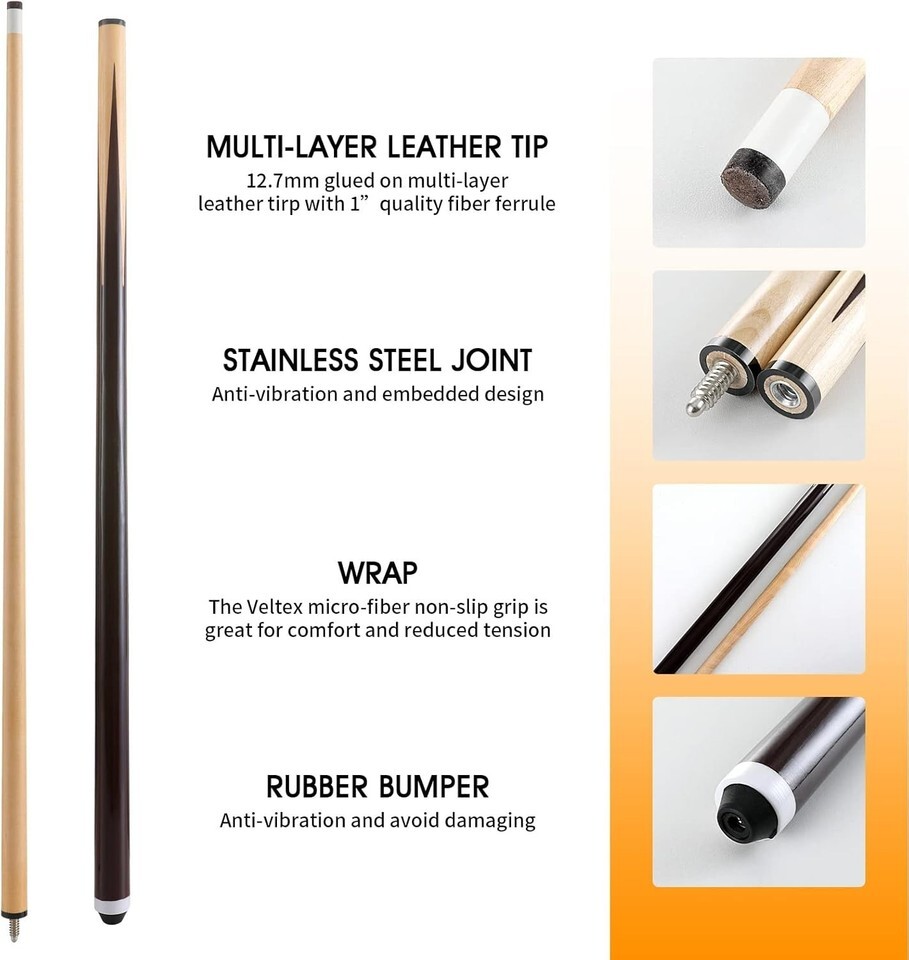 Whether you are a beginner or looking to enhance your collection, our Two-Piece 58" Billiards Cue Stick Set offers unmatched portability and quality. The easy-to-transport design allows you to take your game anywhere, from friendly matches at home to competitive sessions at the bar.