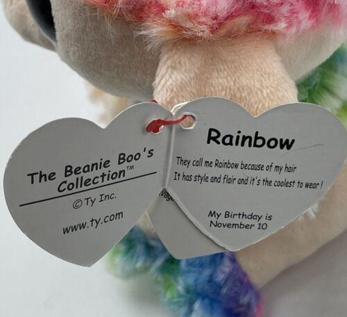 Preowned Ty Beanie Boos Rainbow the poodle 2019 Glitter Eyes. In good condition. Collectible never played with.