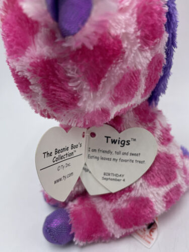 Preowned Ty Beanie Boos Twigs the giraffe 2014 pink with Glitter Eyes. In good condition. Collectible never played with.
