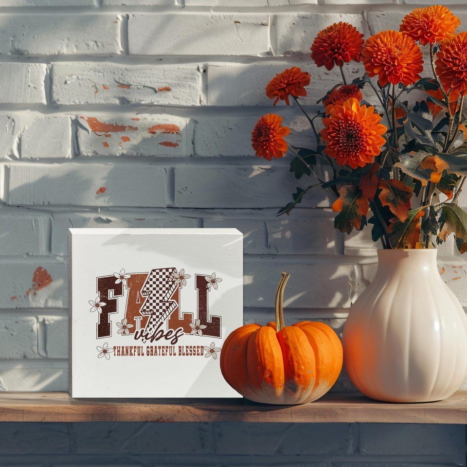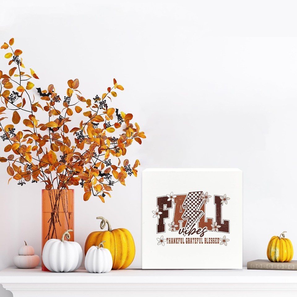 - Ty-mh-019 Retro Fall Thanksgiving Wooden Box Sign 5x5 Inches