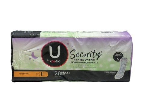 U By Kotex Security Maxi Pads GENTLE On Skin Overnight Night Defense, 28 Pads.