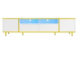 Elevate your living space with this versatile TV stand, featuring 2 cabinets, 2 drawers, and 2 open shelves to organize media devices, collectibles, or decor with ease?tuck away gaming consoles, store remotes, and showcase art for a clutter-free haven in any home, from cozy apartments to spacious living rooms. The sleek golden trim strips, 6 shiny metal legs, and a built-in 16-color LED strip controllable via Bluetooth add upscale glamour with modern flair, making it a perfect fit for minimalist style while doubling as a stylish statement piece. Crafted from premium, durable materials, it withstands daily use with a sturdy frame and smooth surfaces, maintaining beauty and functionality for years. Six solid metal legs ensure exceptional stability and load-bearing capacity, supporting heavy TVs, books, or decor without wobbling?ideal for high-traffic areas. Combining smart storage, elegant design, and long-lasting durability, this TV stand transforms your entertainment area into a harmonious, chic centerpiece that works as hard as it looks.