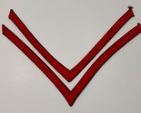 Scarlet wool construction with black chain stitching along the borders. These appear to be unused. There is no evidence of use, age, and no moth damage. This matched set of chevrons were worn during the Spanish American War and Indian Wars. Matched set.