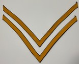 Yellow wool construction with black chain stitching along the borders. These appear to be unused. There is no evidence of use, age, and no moth damage. This matched set of chevrons were worn during the Spanish American War and Indian Wars. Matched set.