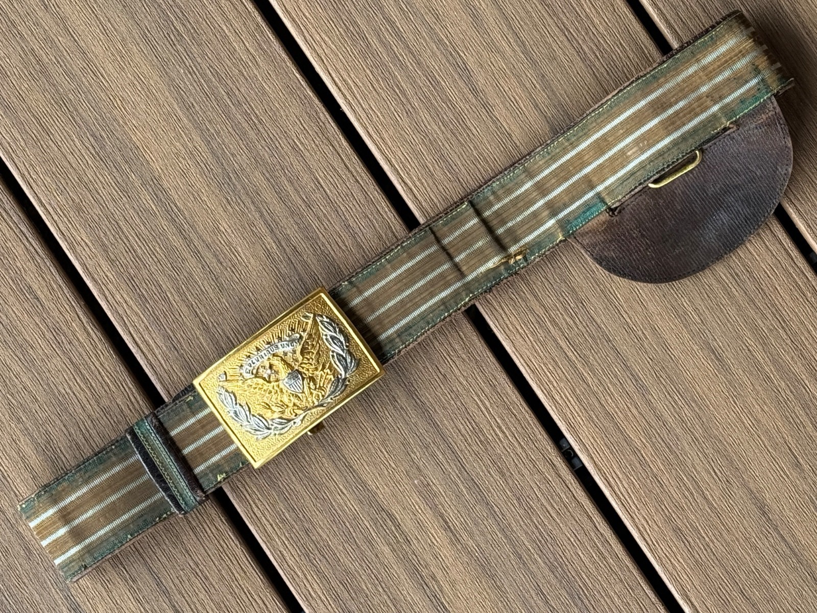 The U.S. Army Model 1902 Officer's Dress Belt, often associated with the Model 1902 Army Officers' Saber, was a key component of the officer's full-dress uniform. Adopted in 1902, the belt served a ceremonial purpose, as officers in the field increasingly favored sidearms like revolvers over swords