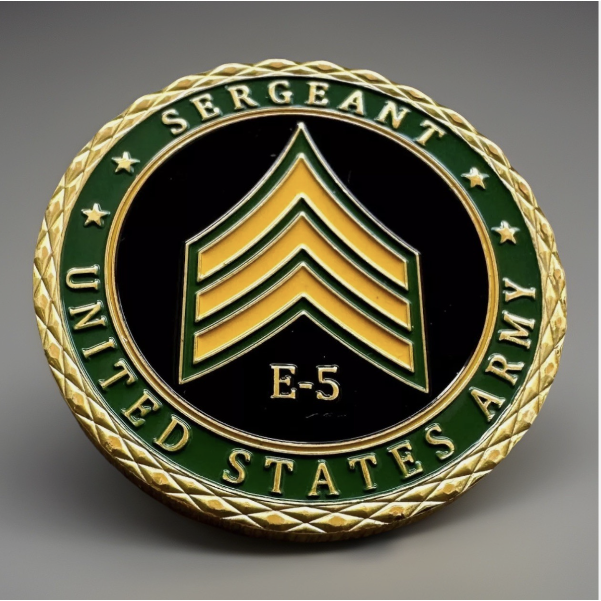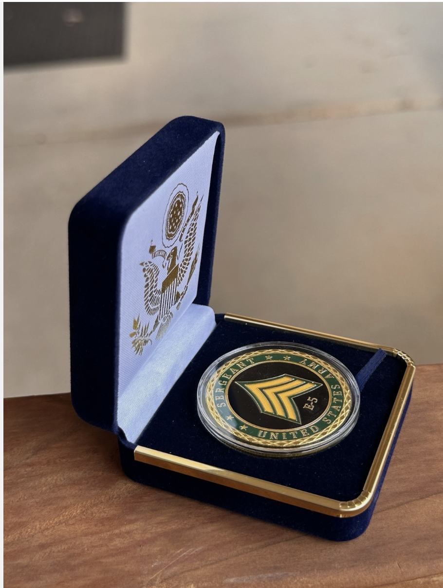 U.S. Army Sergeant E-5 Rank Challenge Coin With Blue Velvet Case. Perfect Gift!