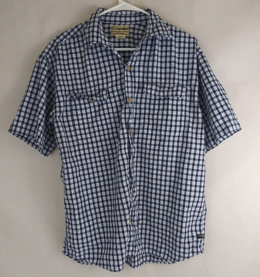 - U.S. Expedition Men's Blue Plaid Shirt Size Medium
