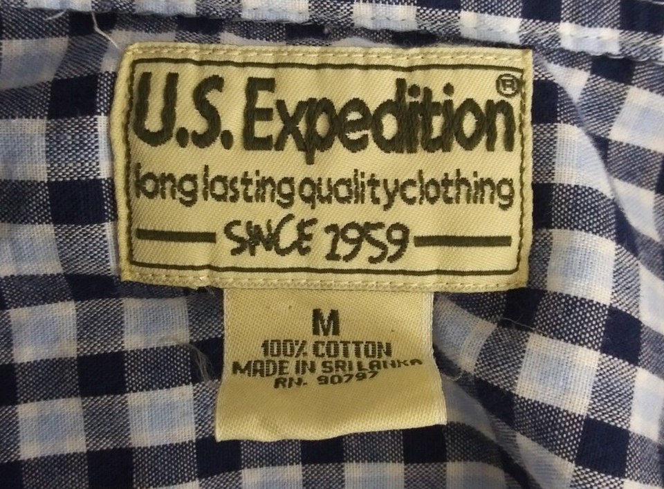 This is for a U.S. Expedition Men's Blue Plaid Shirt Size Medium.