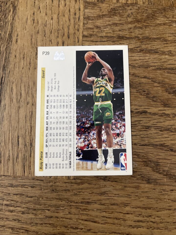 This UD Ricky Pierce Card #P39 is a must-have for any basketball fan. The card features a stunning image of the National Basketball Association (NBA) league player and is perfect for collectors of sports trading cards. Its excellent card condition ensures that it will be a valuable addition to any collection, making it a great investment for the future. If you're looking for a unique piece of sports memorabilia, this card is definitely worth considering.