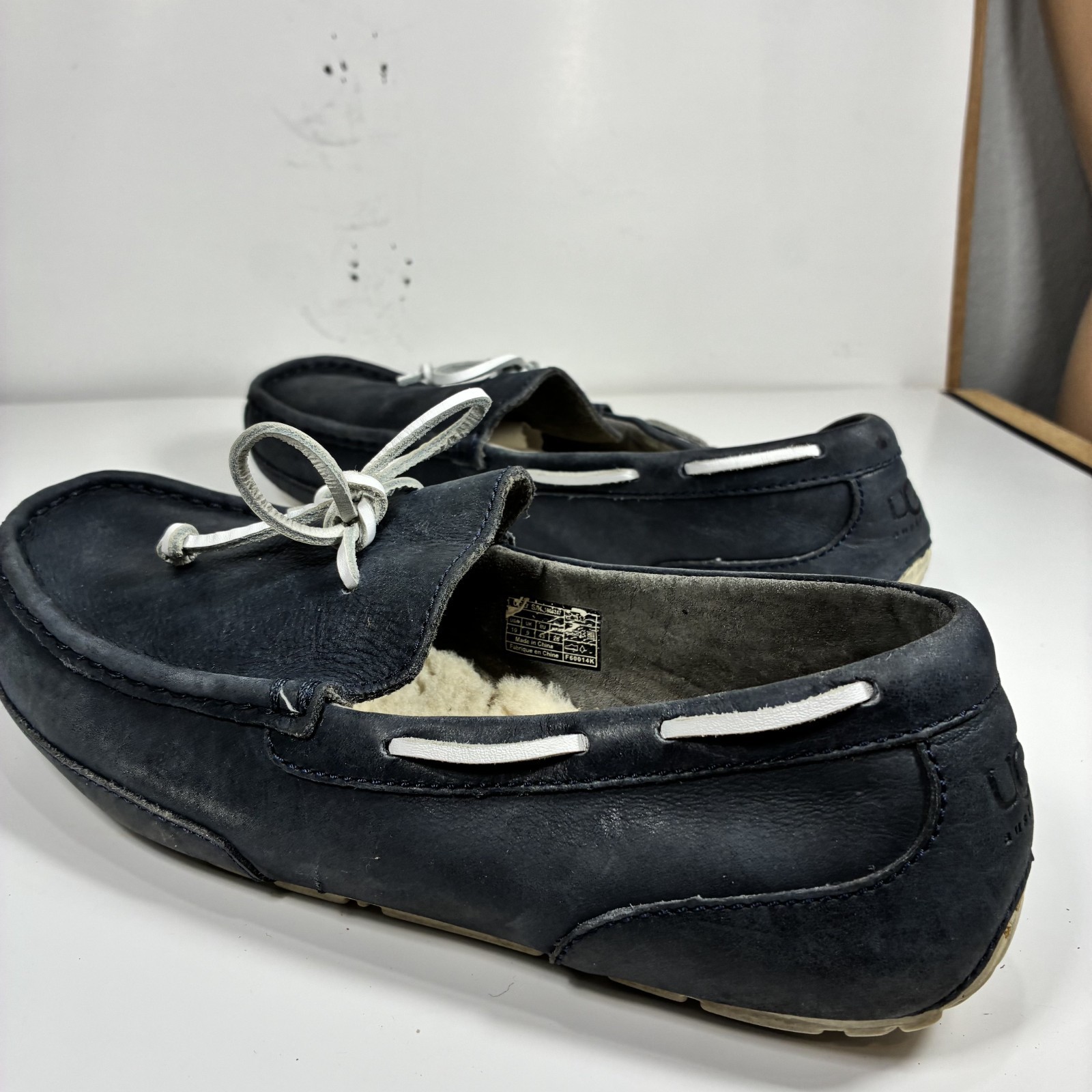 UGG Chester Men's Navy Leather Sheepskin Moccasin Loafers Slip On size 10