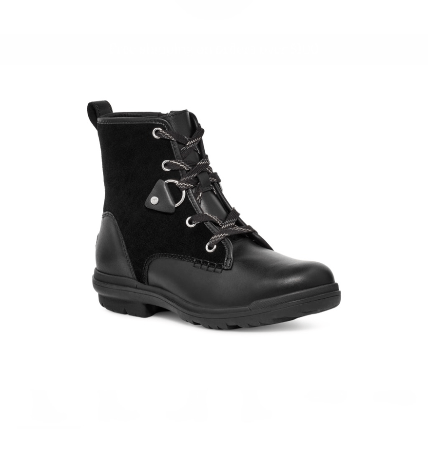 UGG Hapsburg Hiker black waterproof suede and leather hiking boots. $170 retail. This winter-ready hiker is equal parts style and substance and is made with seam-sealed waterproof leather for enhanced protection from the elements. The lace-up fashion boot silhouette features a medial zipper, subtle heel, and Spider Rubber outsole for traction, pairing with all your favorite cold-weather looks ? try it with jeans and a flannel or leggings and a puffer jacket.