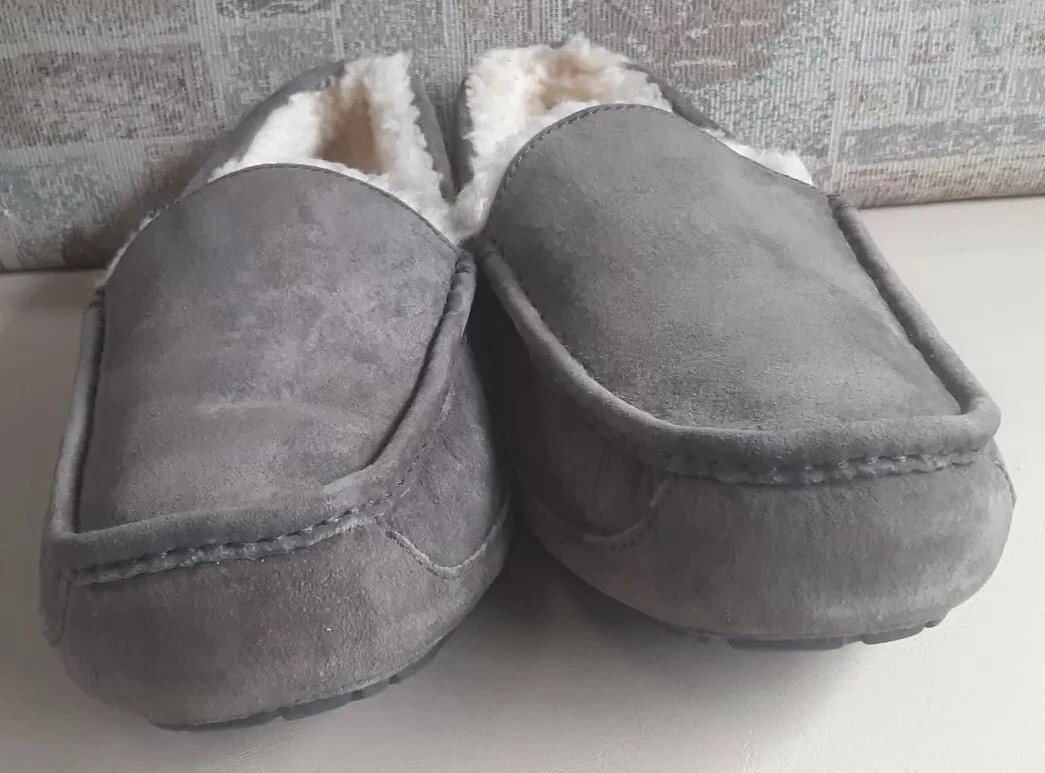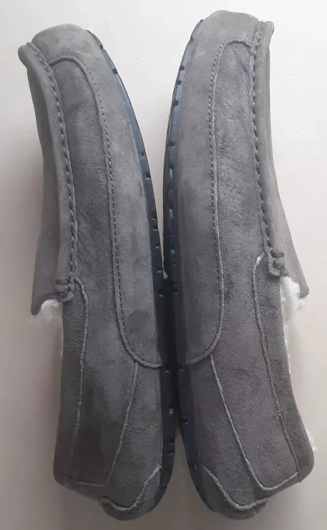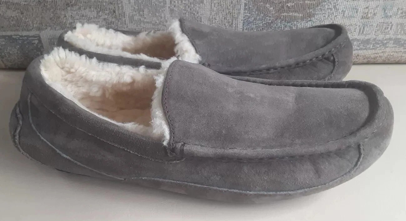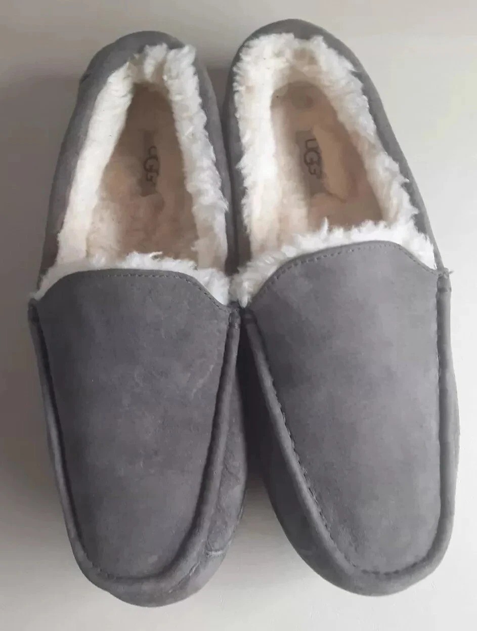 - UGG Mens Slippers 9 Ascot Gray Suede Slip On Shearling Lined Moccasin K