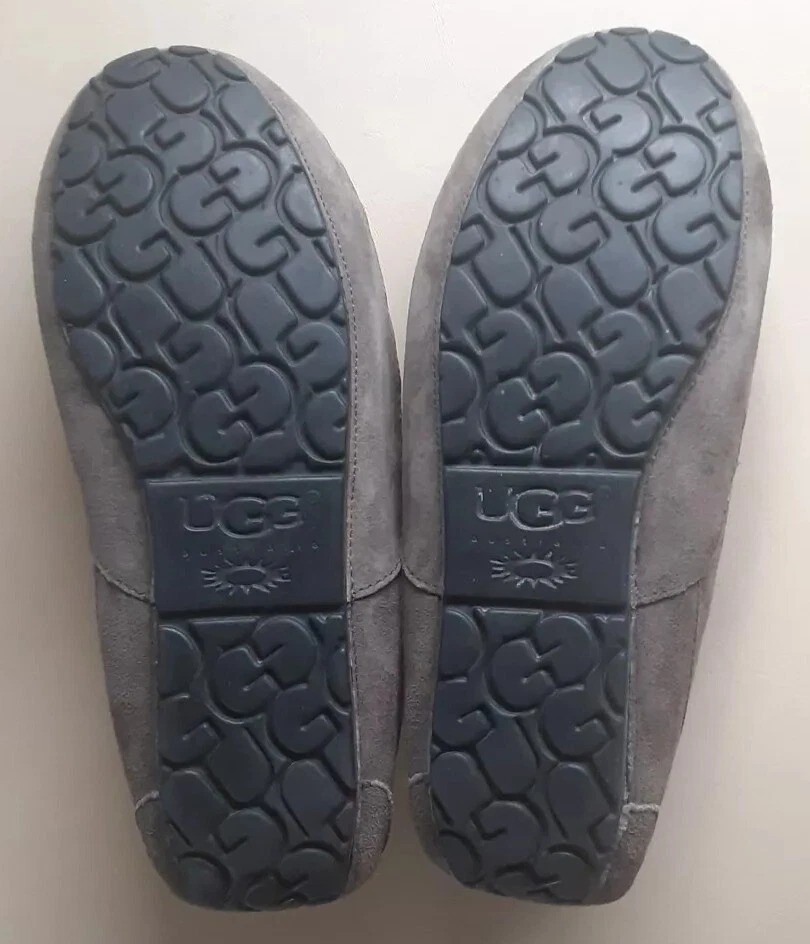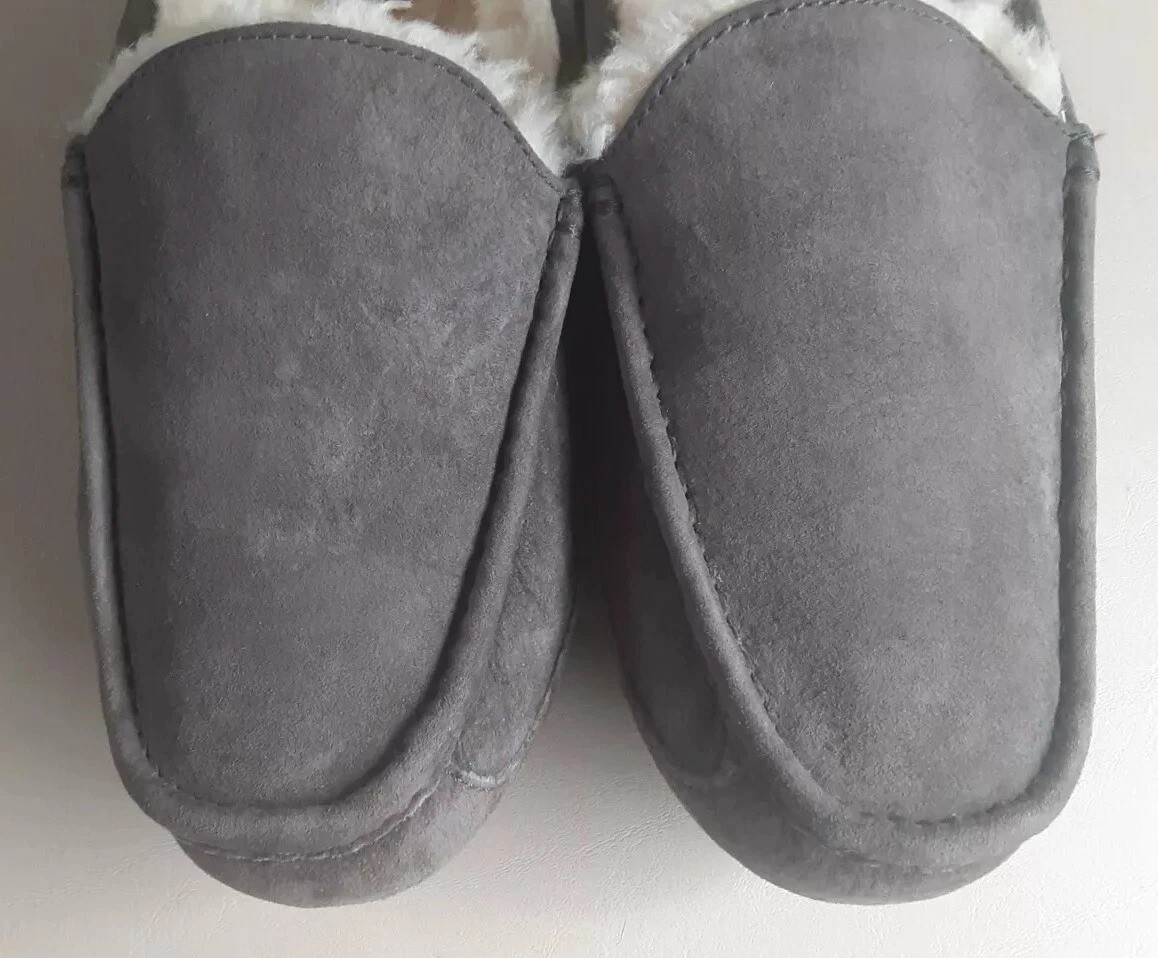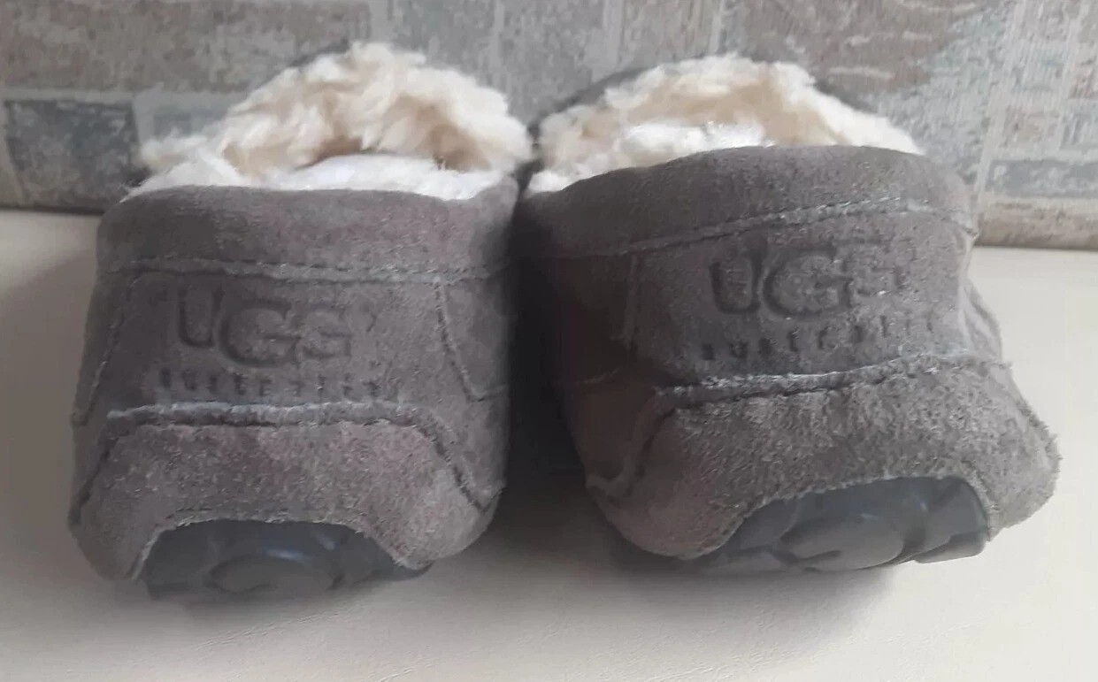 - UGG Mens Slippers 9 Ascot Gray Suede Slip On Shearling Lined Moccasin K