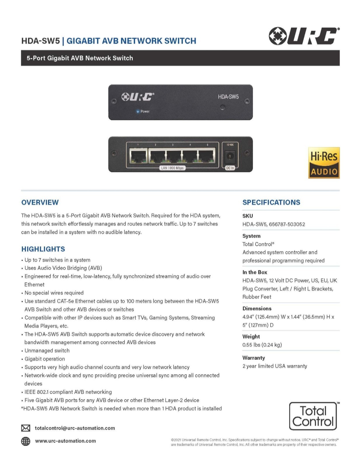 - URC HDA-SW5 Total Control 5-Port Gigabit AVB Network Switch